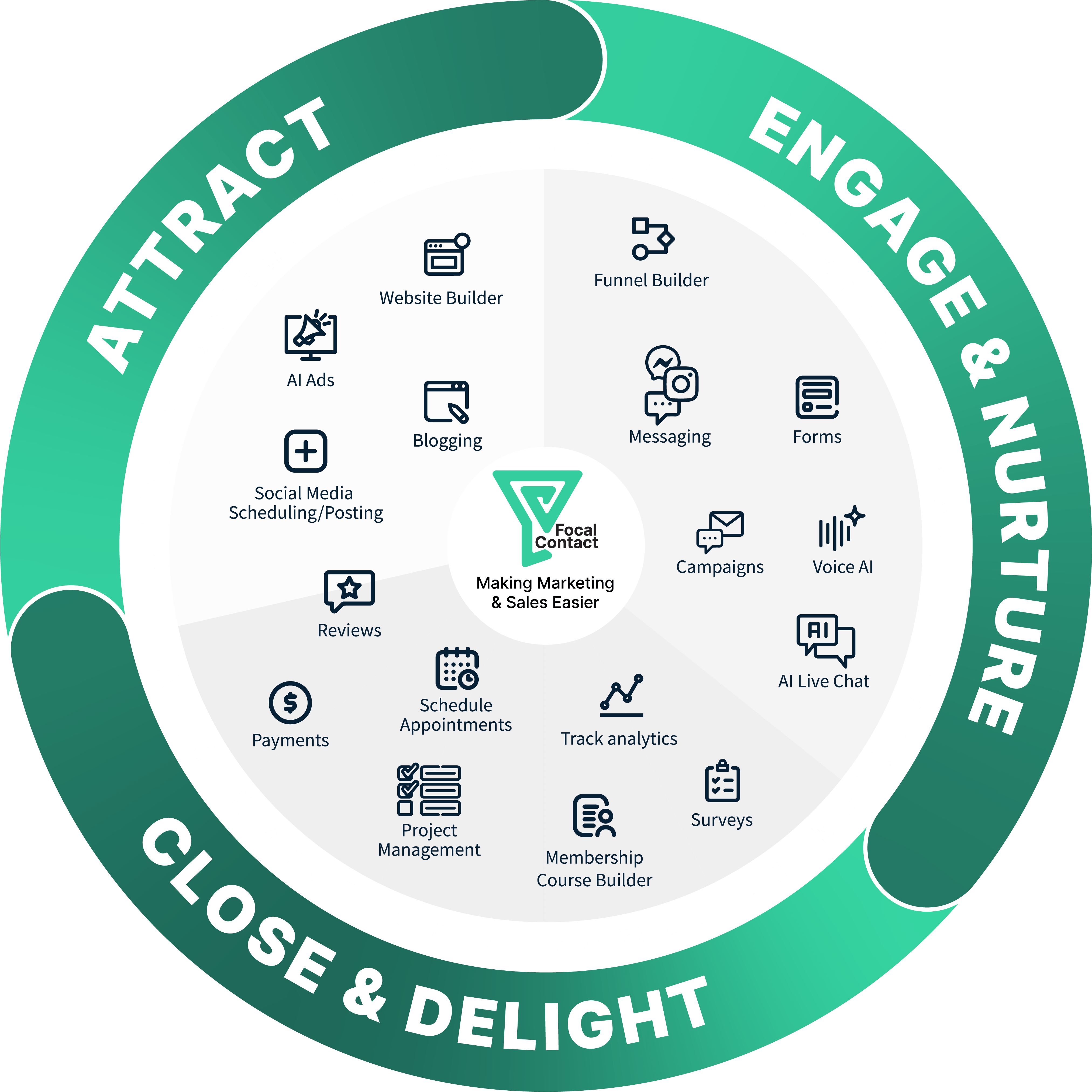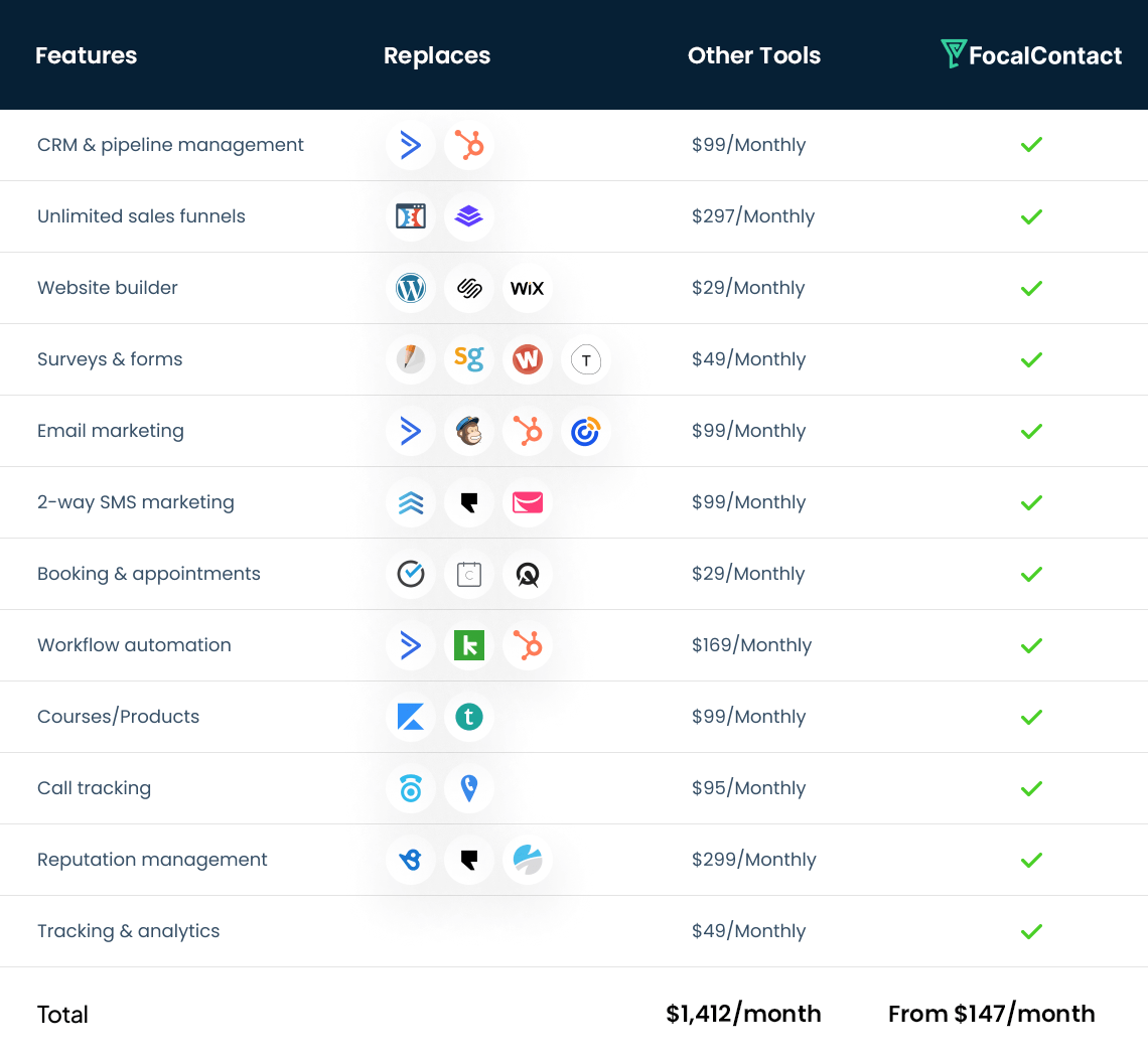 FocalContact is the perfect blend of all of the tools you need, with AI and automation bringing it all together to make marketing and sales easier